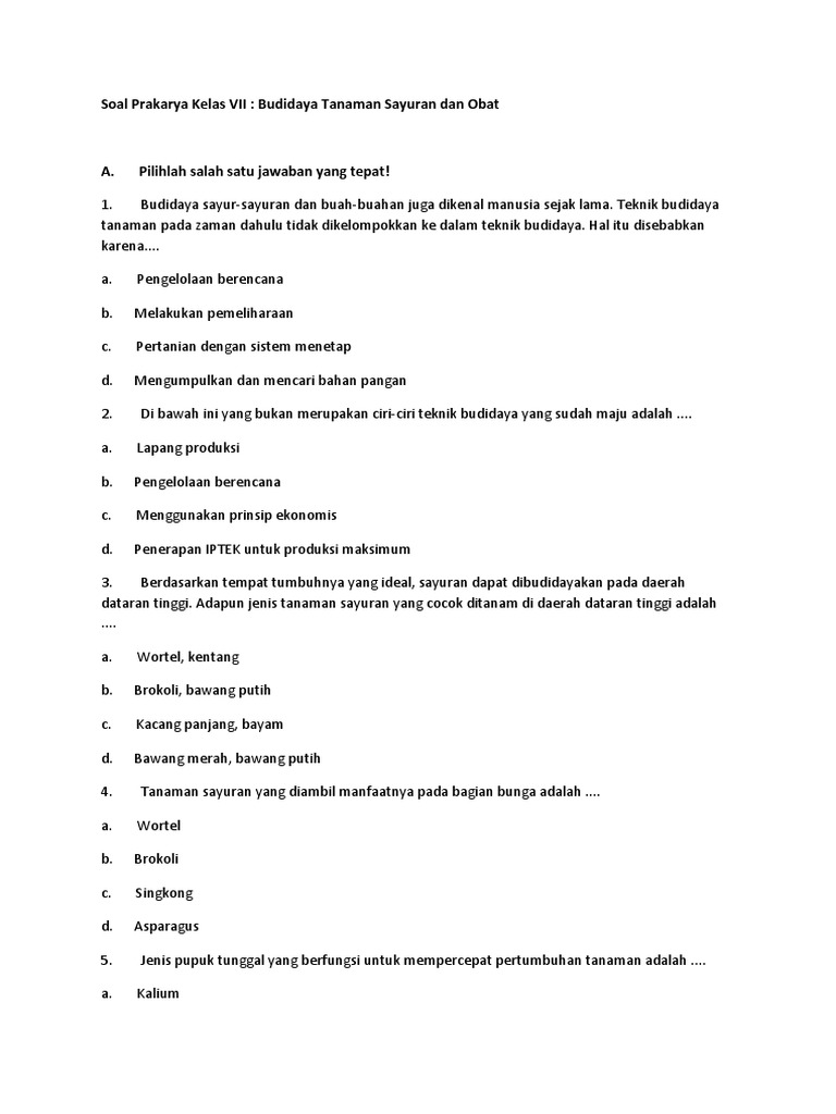 Soal Budidaya Tanaman - Soal Prakarya Budidaya Tanaman Sayur Kelas 7 Semester 1 - Soal teori kejuruan agribisnis tanaman pangan dan hortikultura ini bukan.