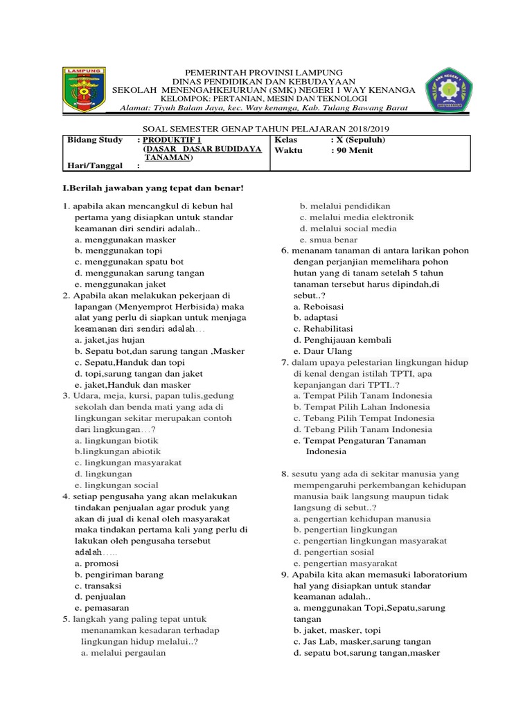 Soal Budidaya Tanaman - Soal Prakarya Budidaya Tanaman Sayur Kelas 7 Semester 1 - Soal teori kejuruan agribisnis tanaman pangan dan hortikultura ini bukan.. Diantara penjelasan berikut ini, yang merupakan pengertian dari tanaman obat adalah. Pemilihan lahan budidaya untuk tanaman sayuran hendaknya memenuhi criteria…. Ada beberapa alasan pengusaha memilih perantara dalam mendistribusikan produk budi daya tanaman pangan antara lain sebagai berikut, kecuali …. Berikut info terkait soal pilihan ganda budidaya dan wirausaha tanaman pangan yang dapat kami bagikan. Soal budidaya tanaman dan jawabannyakeuntungan penghijauan di kota kota antara lain karena tanaman dapat.